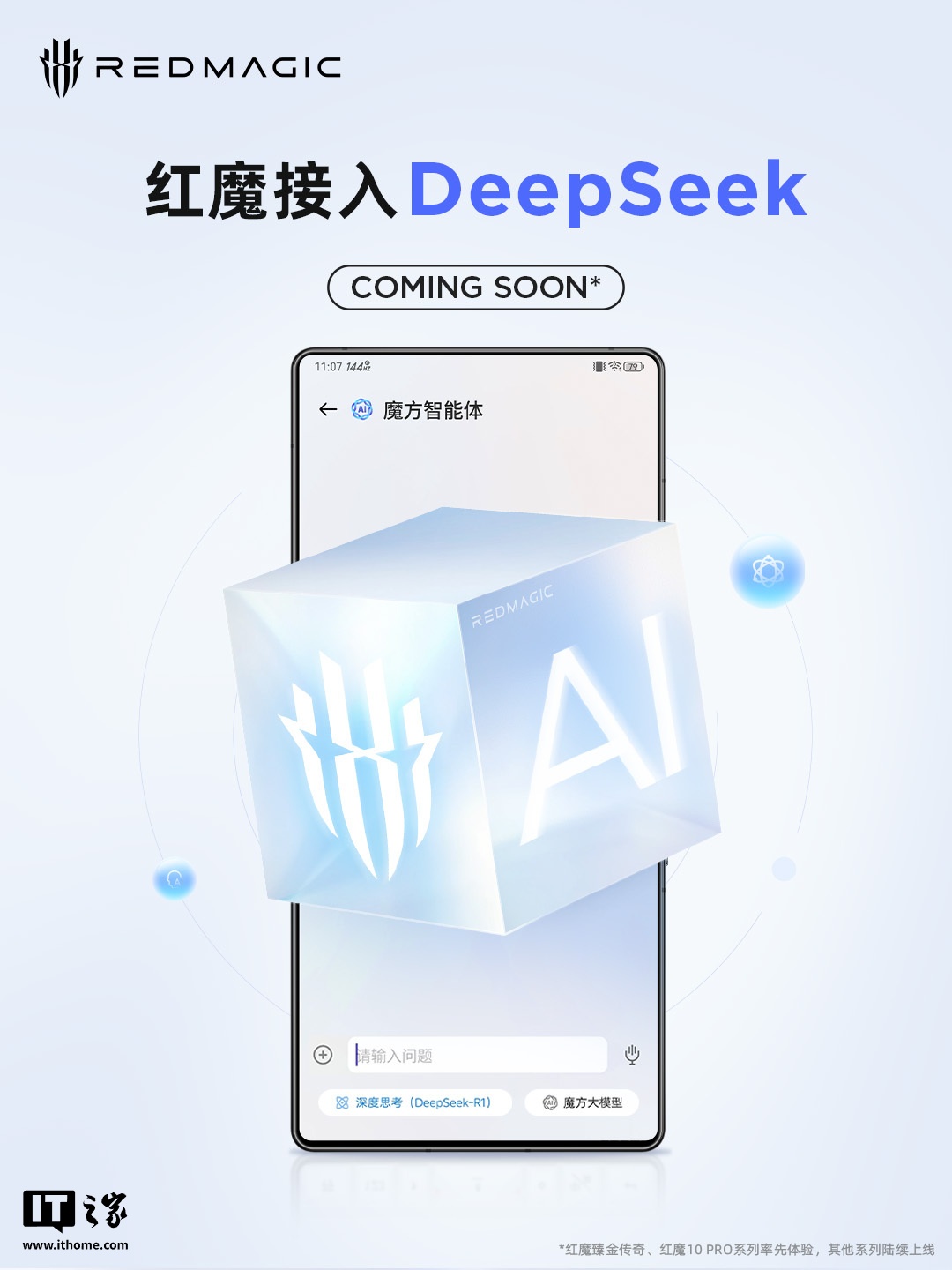 IT之家 2 月 10 日消息,红魔游戏手机今日宣布即将接入 DeepSeek R1 大模型,官方海报显示红魔臻金传奇、红魔 10 PRO 系列率先体验。