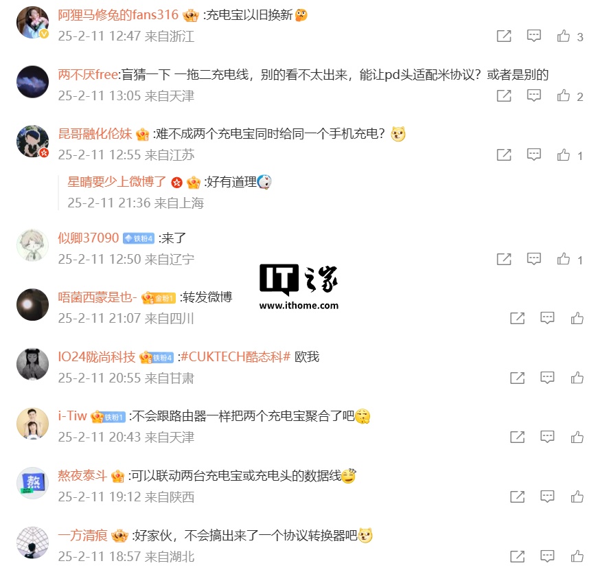 根据预热海报来看,该款新品预计为充电配件,支持让旧充电设备“一分二”或“二合一”输出。评论区有网友猜测其为一拖二充电线或让两个充电宝同时给同一个手机充电的设备。