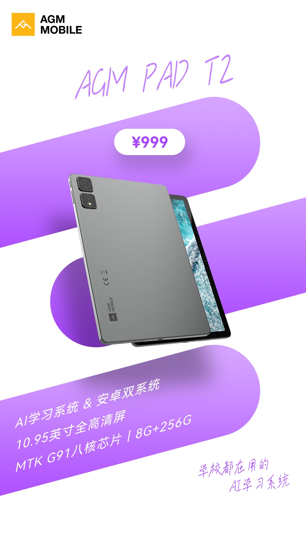 性价比:AGM PAD T2 售价约 999 元(相当于 200 根烤肠),主打高性价比,价格仅为普通平板的一半。
