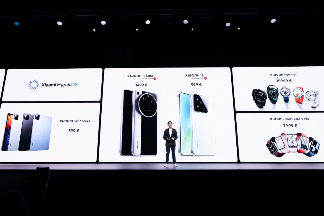 小米方面,由小米集团合伙人、总裁卢伟冰领衔,主要面向海外市场发布了小米15系列。其中,小米15标准版在海外市场的起售价为999欧元,而小米15 Ultra的欧洲起售价更是高达1499欧元,超过苹果最贵的机型iPhone 16 Pro Max。