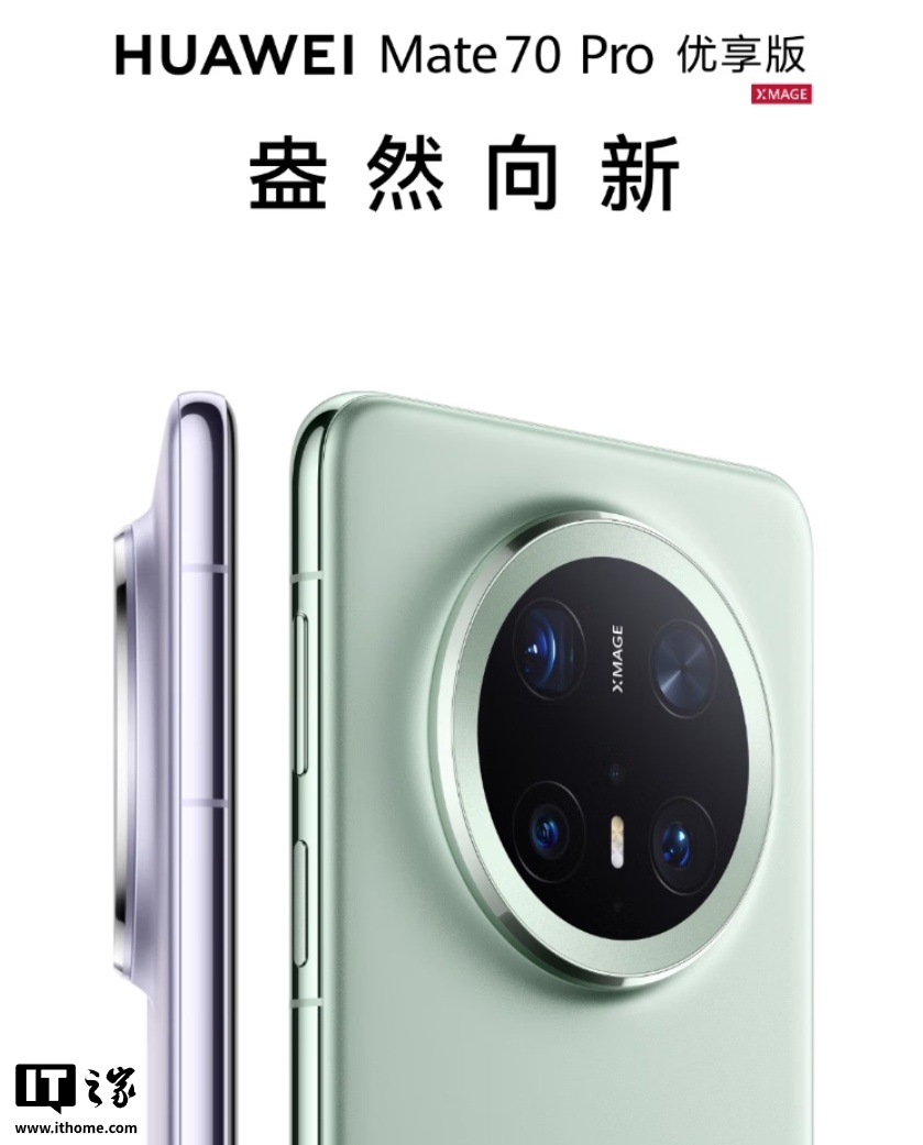 新机配备全新红枫原色摄像头(150 万多光谱通道,可配合超聚光主摄、超聚光微距长焦、超广角摄像头使用),支持 XMAGE 风格拍摄(包括:原色、鲜艳、明快等)。Mate 70 Pro 优享版还支持北斗卫星消息、第二代灵犀通信。