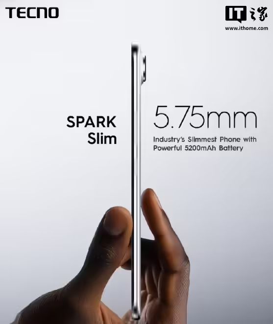 在 2 月 28 日那天,传音官宣了一款名为“TECNO SPARK Slim”的手机,号称全球最薄的智能手机,其最薄处仅有 5.75mm。