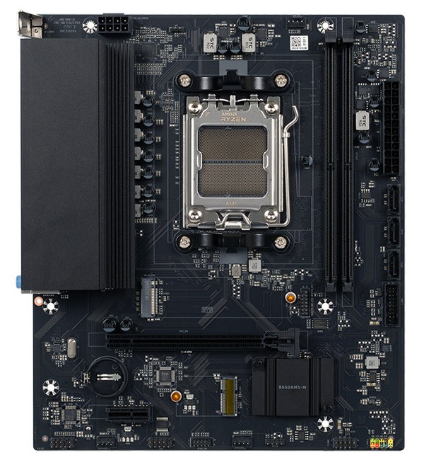 精英 B650AM5-M 主板采用 245×210 (mm) 的 2DIMM 窄版 M-ATX 板型,其采用 6+2+1 相供电,配备 VRM 散热装甲但不包含一体式后置 I/O 挡板。IT之家整理其具体规格如下: