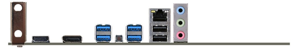 前置接针:1× HDMI、1× DP、4× USB-A 5Gbps、2× USB-A 480Mbps、1× 1GbE RJ45,3× 音频插孔;