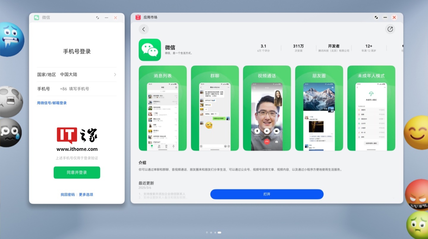 鸿蒙原生版微信 App 已在 1.0.4.16 邀测版本时支持了平板设备安装,但不支持手机、平板端同时登录(即平板无法选择“作为平板登录”用户只能选择其中一种设备进行登录)。本次上线的新版本同样暂不支持该特性,不过手机端华为应用市场已显示其适配了平板设备。