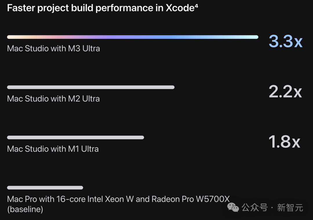 在代码编译方面,M3 Ultra的Mac Studio性能3.3倍狂飙;在3D渲染上,提速3.2倍。还有DNA测序、视频编辑、AI视频处理,均实现了大幅提升。