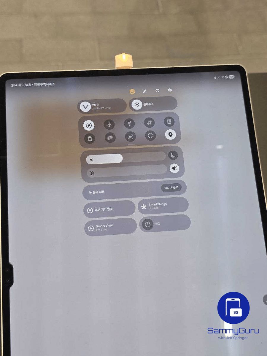 One UI 7.0 的 Quick Settings 面板首次适配大屏幕设备。相比较手机版本,平板上的选项更宽,充分利用了横向空间。