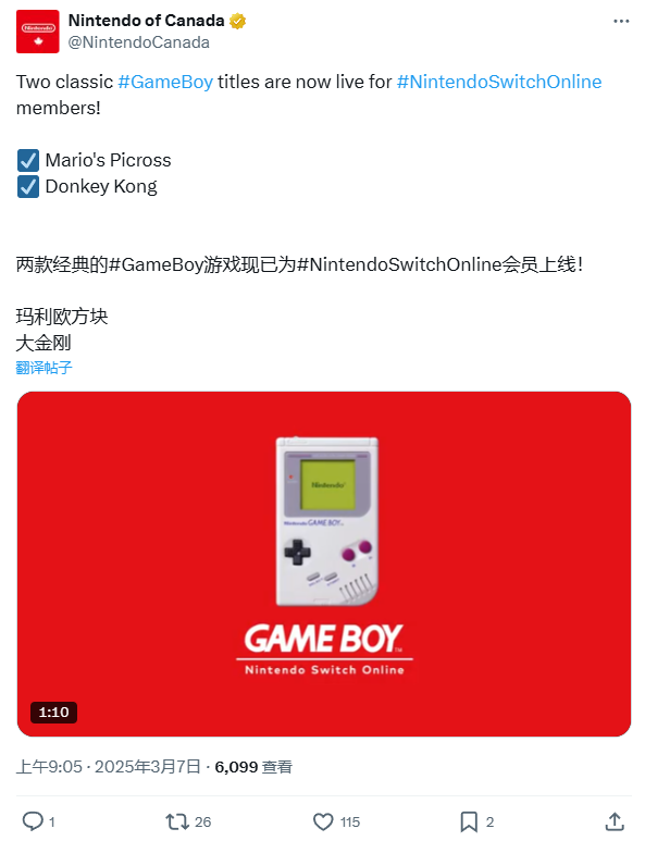 IT之家 3 月 7 日消息,任天堂官方今日宣布为 Nintendo Switch Online 高级会员提供两款新的 GameBoy 经典游戏 ——《咚奇刚》与《马力欧方块》。