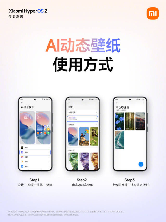IT之家 3 月 7 日消息,小米澎湃 OS 今日发布答网友问(第八集),主要对于 AI 动态壁纸的相关问题进行了解答,预计 3 月中旬完成全量推送。