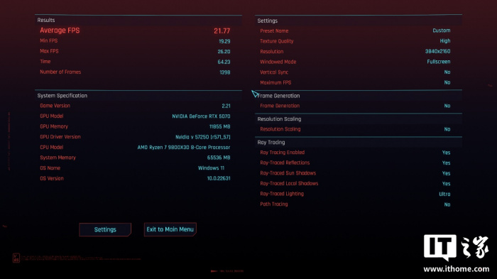 在 4K 分辨率超级光追画质下,游戏平均帧数为 21 帧;