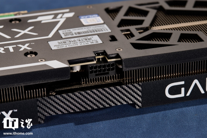 显卡供电接口依旧为 12V-2*6 设计,而且保持了反扣式朝向和独立背板开槽,这点好评。