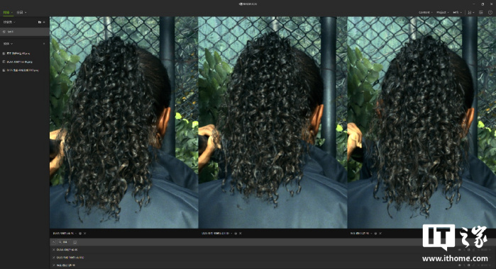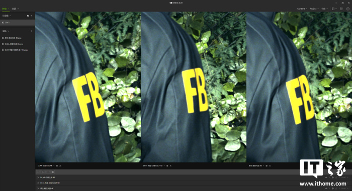 然后通过 NVIDIA ICAT 工具进行比较,在不放大的情况下 3 者根本看不出区别,所以我们挑选了 3 处细节进行放大对比。