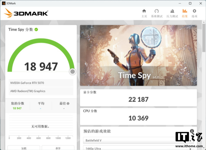 在 3DMark Time Spy DX12 测试中,影驰 GEFORCE RTX 5070 FIRE 显卡得分达到了 22187 分,对比 RTX 4070 的 17392 分,提升幅度约 27.5%。