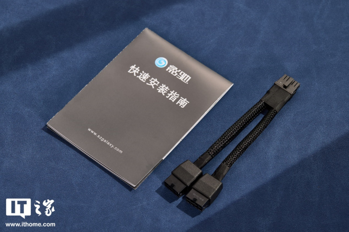 配件给到了 1 根黑色编织材质的 16pin 转 2*8pin 电源转接线和 1 本快速安装指南。