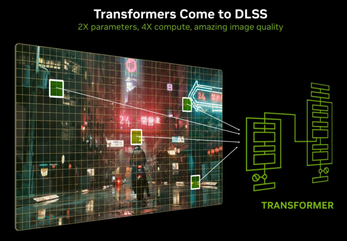 DLSS 4 技术还带来了模型架构的重大升级,DLSS 光线重建、DLSS 超分辨率和 DLAA 特性均由首个实时 Transformer 模型驱动,并用来提升生成像素的质量,它支持通过自注意力操作评估整个帧及多个帧中每个像素的重要程度,更好理解场景关系,让生成的像素具有更好稳定性、更少的伪影、更丰富的运动细节和平滑边缘。