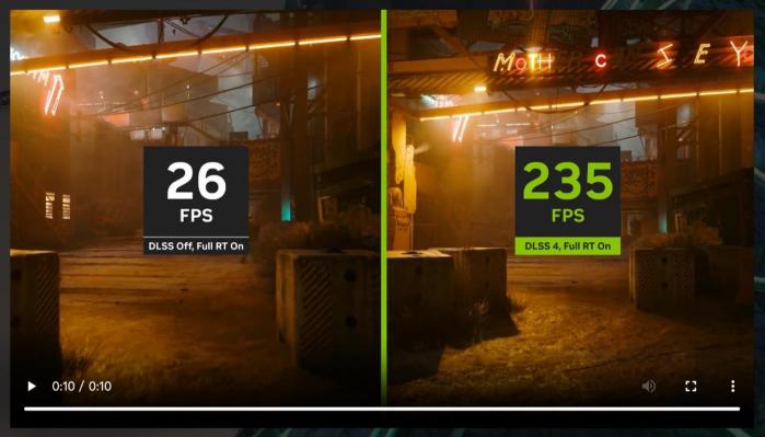 DLSS 4 配合全套 DLSS 技术,包括光线重建、超分辨率以及 DLAA 等功能,最多可实现传统图像渲染的 8 倍帧率。