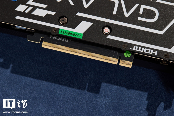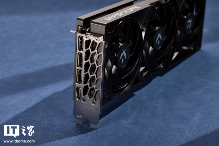 接口挡板区域,影驰还设计了如动物鳞片般的不规则开孔组,接口包含 3 个 DP2.1b 和 1 个 HDMI2.1b,支持最高 8K / 165Hz 输出。
