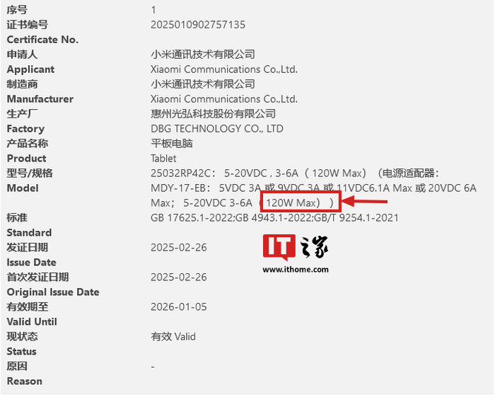 上个月,还有一款型号为 25032RP42C 的小米平板电脑通过 3C 认证,支持最高 120W 快充,配置 MDY-17-EB 充电器,暗示小米或将推出一款定位高于小米平板 7 Pro 的高端平板电脑。