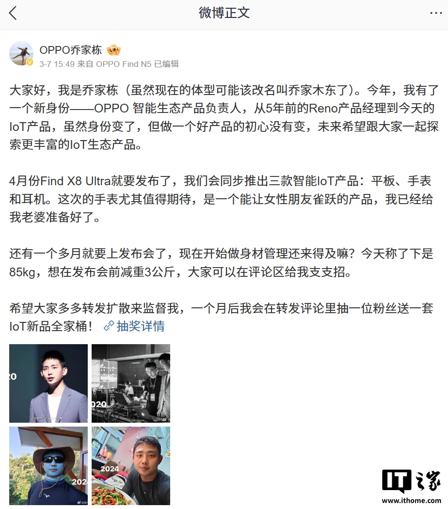 IT之家 3 月 9 日消息,OPPO Find X8 Ultra 旗舰手机已确认将在 4 月发布,据 OPPO 智能生态产品总监乔家栋透露,除新机外,OPPO 还将推出三款智能 IoT 产品:平板、手表和耳机。