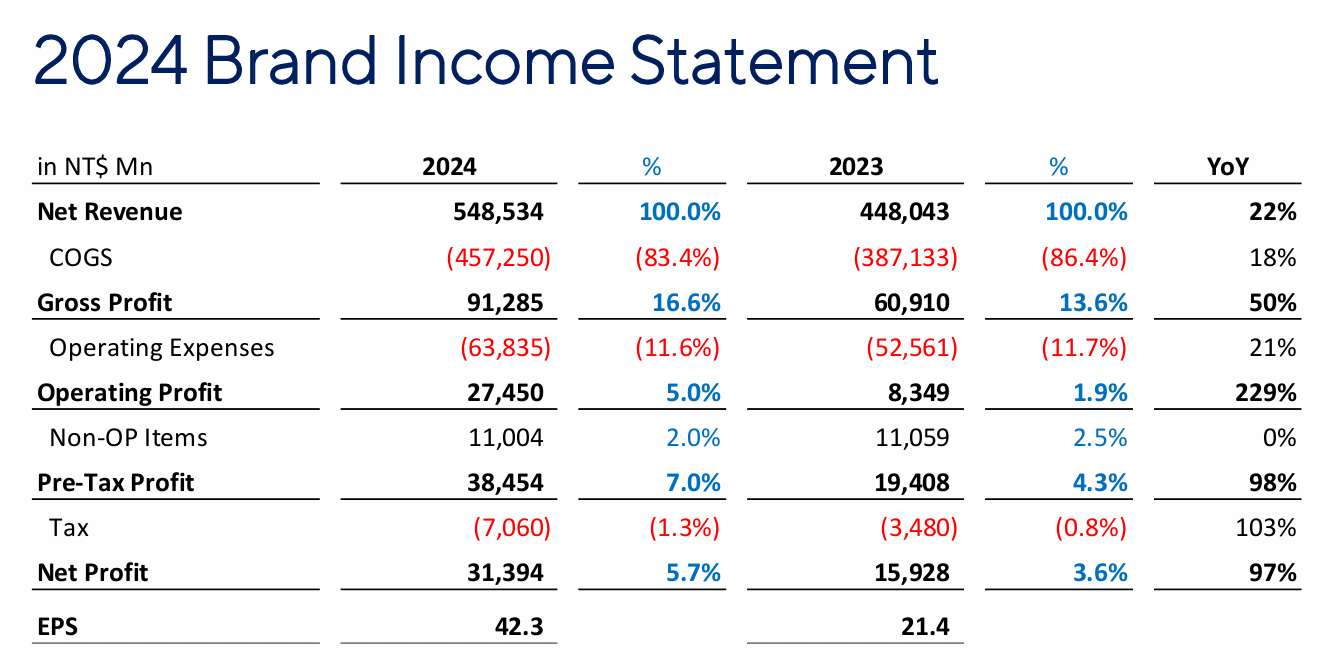 2024 年营收 5485.34 亿元新台币(IT之家备注:当前约 1211.04 亿元人民币),同比增长 22%;