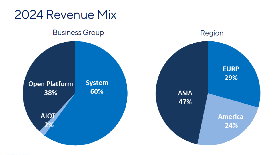 从地区来看,华硕 2024 年有 47% 的收入来自亚洲地区。