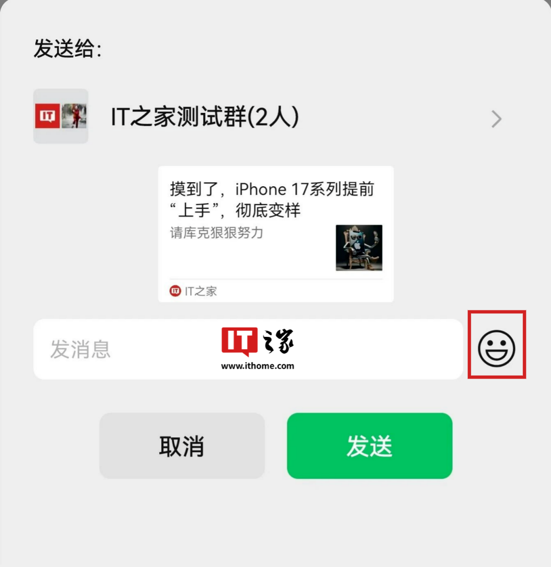 在去年 12 月,IT之家小编曾发现微信的转发样式出现灰测,如下图所示: