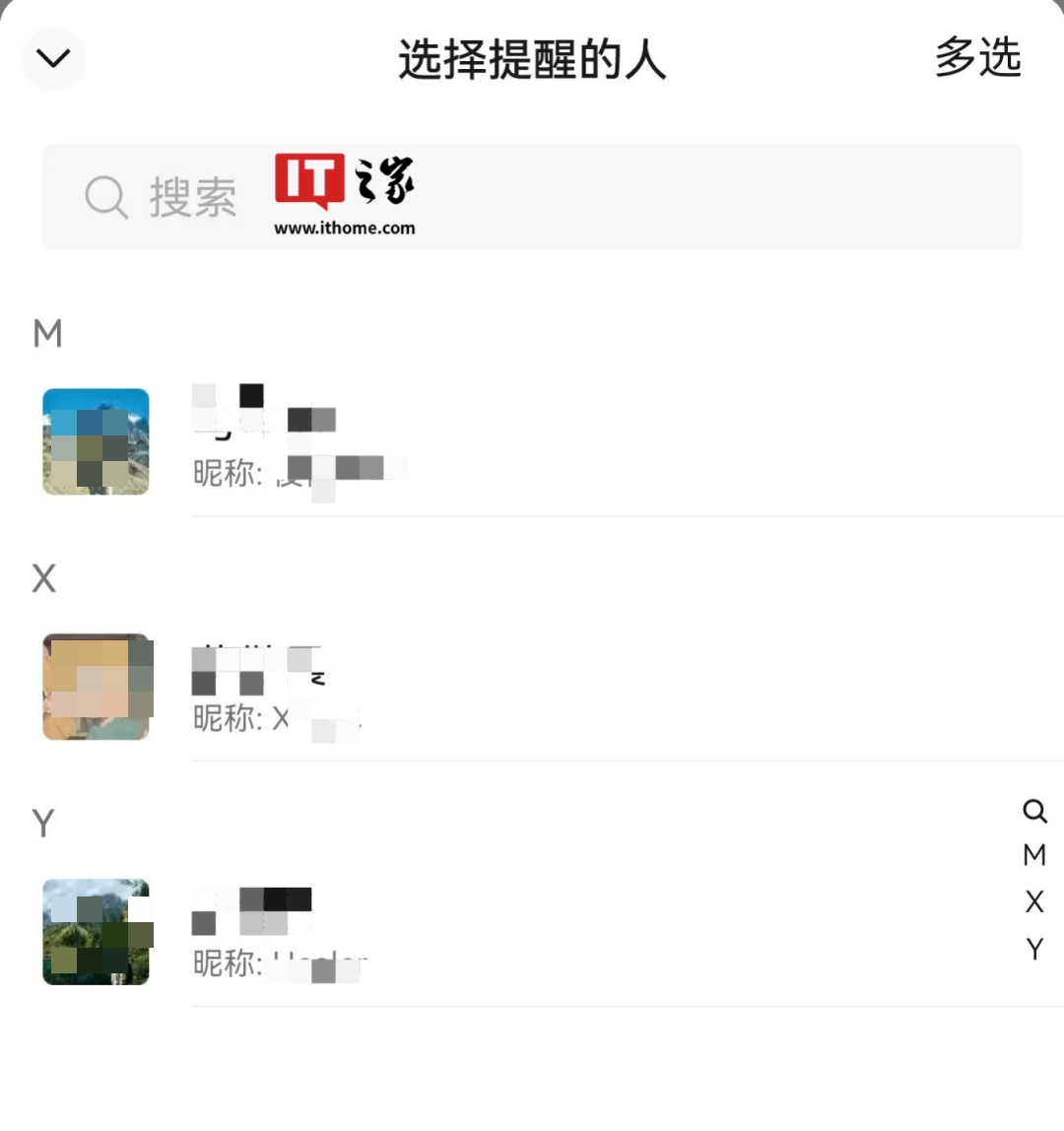 弹出的“选择提醒的人”界面中,会显示引用的消息来自哪位群好友,同样显示备注和昵称。