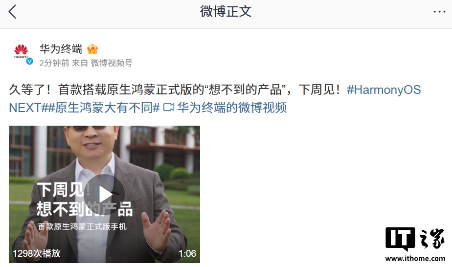 IT之家 3 月 12 日消息,华为常务董事、终端 BG 董事长、智能汽车解决方案 BU 董事长今日宣布:原生鸿蒙正式版“就要来了”。