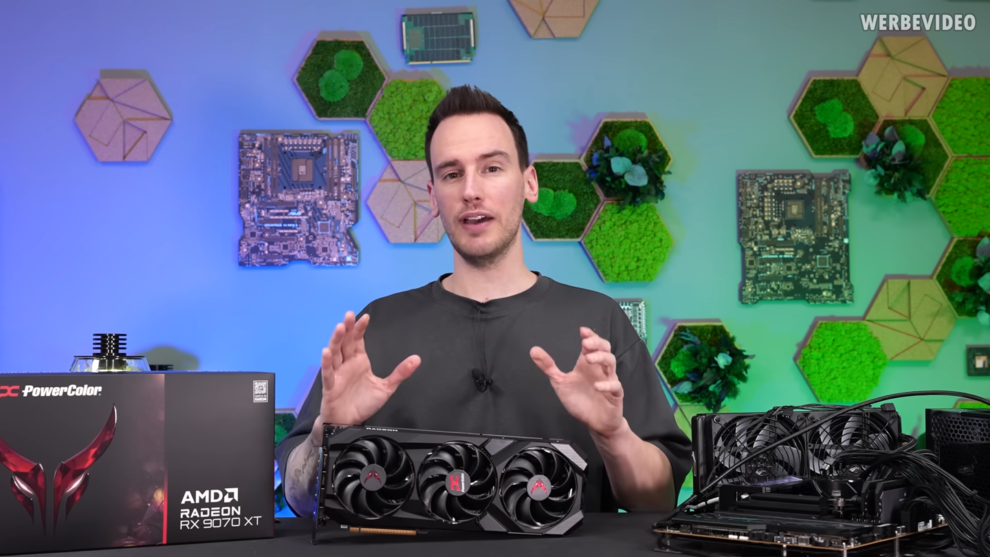 超频大师 Der8auer 与 Alva Jonathan 本周在 YouTube 上展示了这两款显卡的超频潜力。实测显示,RX 9070 XT 降压超频后实际游戏性能已经超越英伟达 RTX 5080。