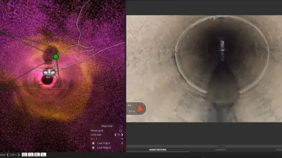 这款无人机既能“上天入地”,穿梭于狭窄逼仄的受限空间,例如水电站的泄洪竖井(深约 250 米、直径 12-18 米),也能在市政暗涵、桥梁架空管道等高危复杂环境中来去自由。