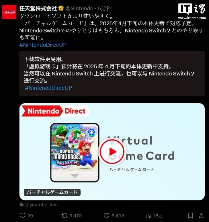 IT之家 3 月 27 日消息,在今日晚间的任天堂直面会上,官方宣布推出 Switch 虚拟游戏卡。