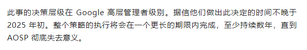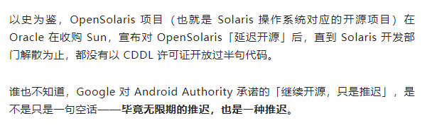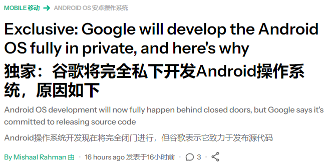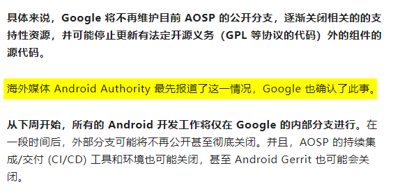 第二点则是,他们自称拿到了绝对独家内部的爆料, “ 谷歌的高层已经决定了,就是要彻底闭源安卓 ” 。