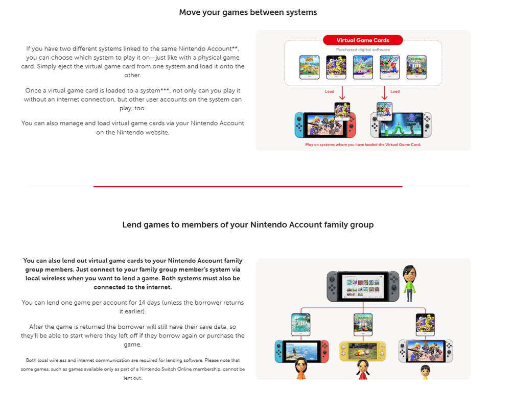 据IT之家了解,即将于下月推出的虚拟游戏卡系统,允许用户在家庭成员之间共享数字游戏,这使得数字游戏获得了与实体卡带相似的便利性,即可以在不同设备之间进行交换使用。然而,任天堂在相关说明中还透露了其它一些信息: