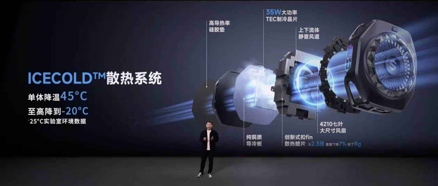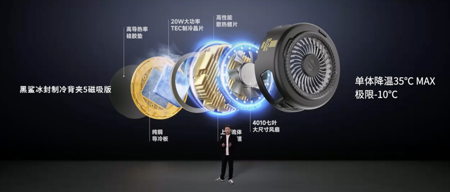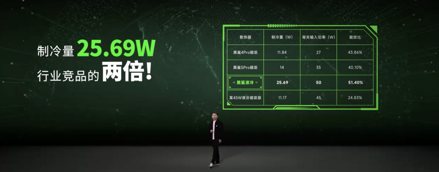官方在最后还介绍了一款黑鲨冰封液冷背夹,但没有公布更多细节,仅强调制冷量 25.69W。