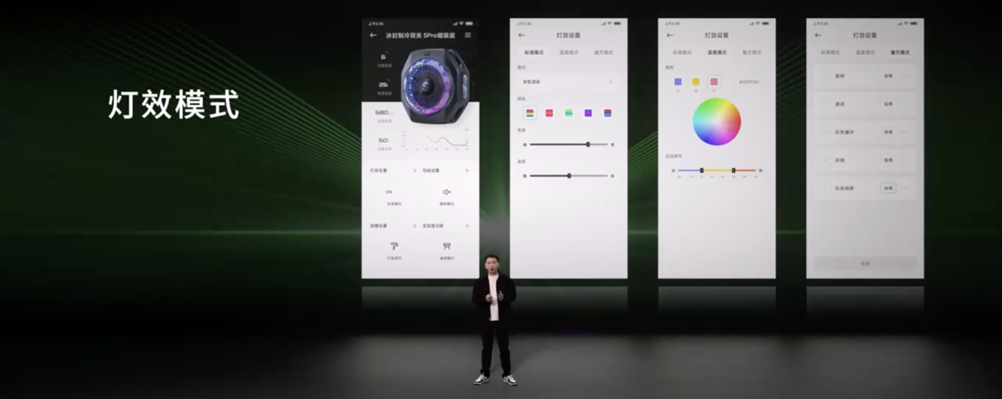 系列磁吸制冷背夹号称设计来自飞机涡轮发动机,其中标准版配备 18 颗 RGB 灯珠,RGB 灯环可呈现立体效果;Pro 版延续钻石切面设计。