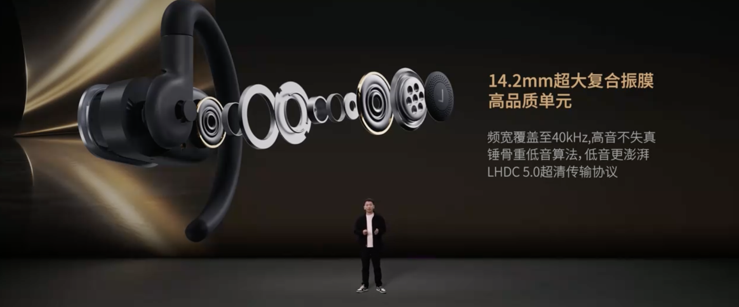 该耳机配备 14.2mm 动圈单元,频宽 40KHz,支持 LHDC 5.0 传输协议。耳机拥有音乐 / 游戏模式,不过没有公布相应模式的延迟信息。耳机本体 60 毫安时电池,充电盒 600 毫安时电池,续航至高 40 小时。