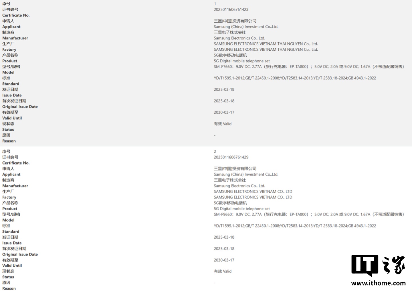 目前,三星 Galaxy Z Fold7 大折叠手机和 Galaxy Flip7 小折叠手机均已通过国家 3C 质量认证,型号分别为 SM-F9660 / SM-F7660,两款手机均支持 25W 充电,不过相应机型的其他确凿规格尚未得到确认。