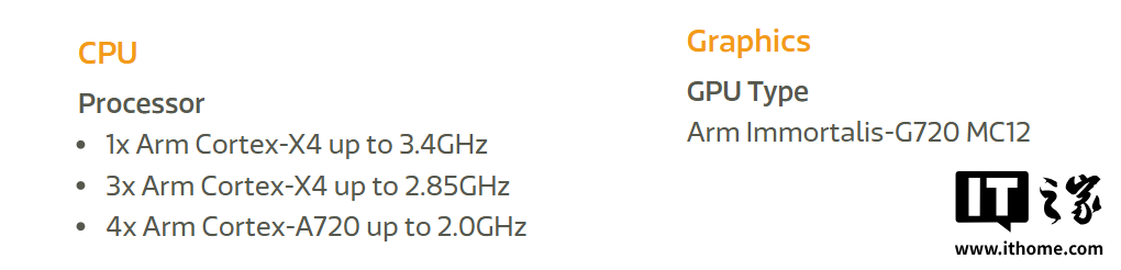 台积电 4nm,X4+A720 全大核架构:1*3.21GHz X4 + 3*3.01GHz A720 + 2*2.80GHz A720 + 2*2.02GHz A720