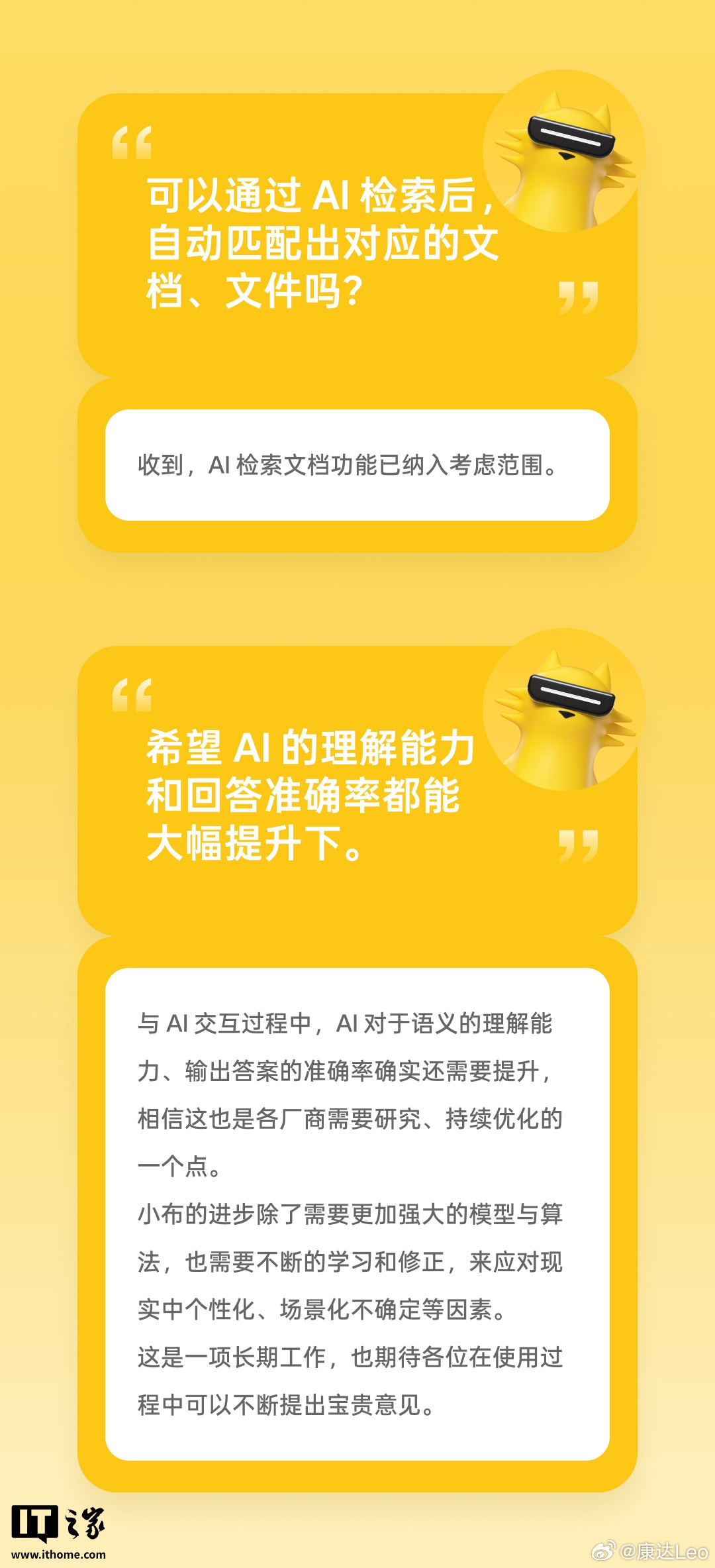 与 AI 交互过程中,AI 对于语义的理解能力、输出答案的准确率确实还需要提升,相信这也是各厂商需要研究、持续优化的一个点。