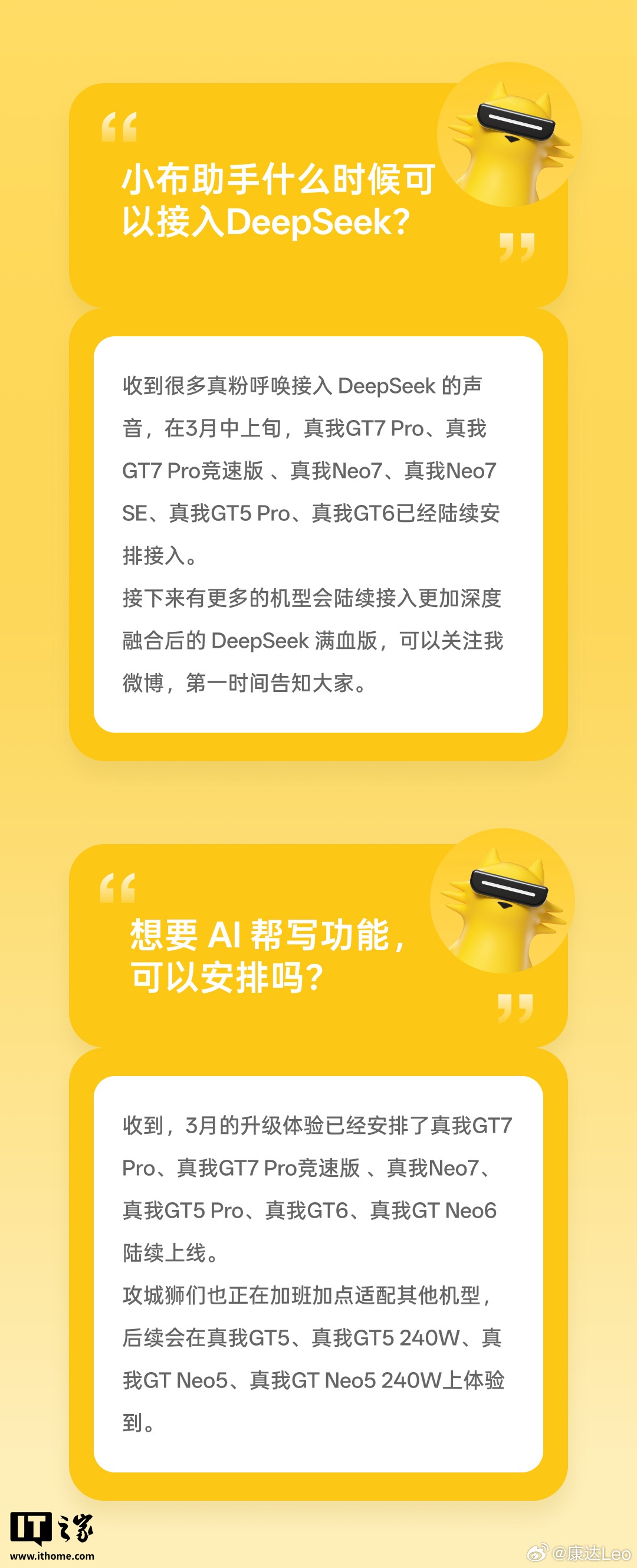 IT之家 3 月 31 日消息,realme UI 产品经理 @康达Leo 今日发布 leoleo 答顺第三期树洞 AI 专场回音,针对真我手机用户在 AI 功能上的问题进行了解答。