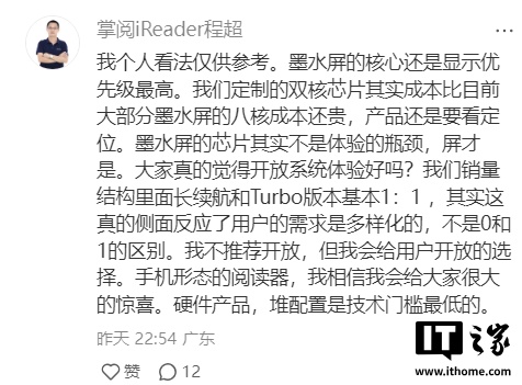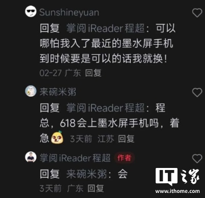 IT之家查询发现,掌阅科技 CEO 程超已发布预热,确认今年 618 会有墨水屏手机,并称:“手机形态的阅读器,我相信我会给大家很大的惊喜。”