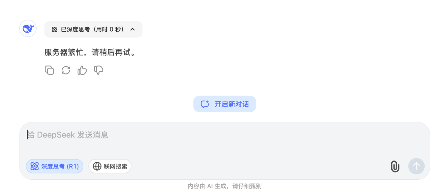 毕竟使用者数量庞大,且仍然在迅速增加,连续发问,deepseek 难免就会出现服务器繁忙的情况。这也让 deepseek 原本为我们节省下的宝贵时间,难免又被浪费掉。