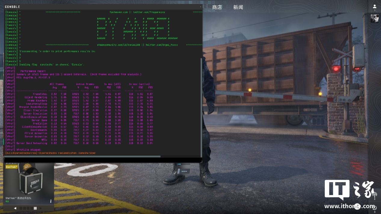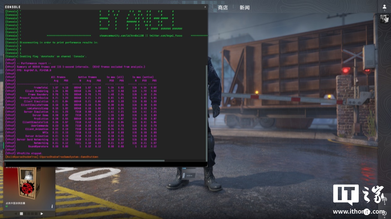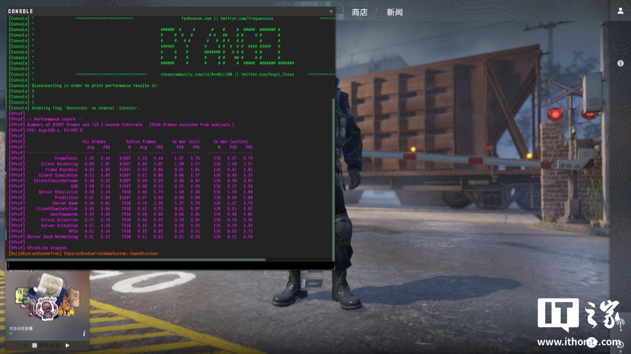 《CS2》这款在线竞技对更侧重 CPU 性能,我们先以 1080P + 低画质来测试一下 CPU 性能的上限,此时游戏的平均帧数刚好 900 帧,1% Low 帧也有 305 帧,符合 9800X3D 强悍的性能水平。