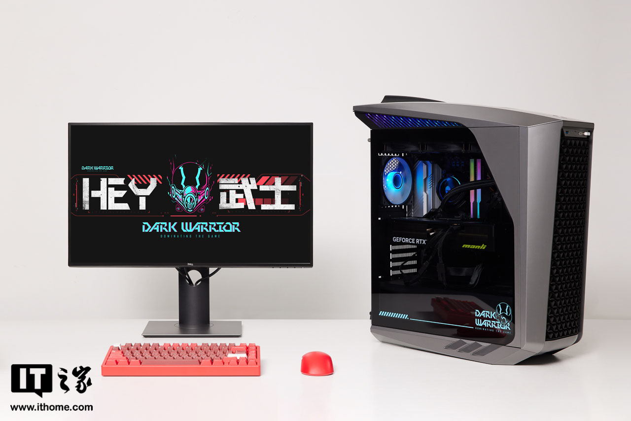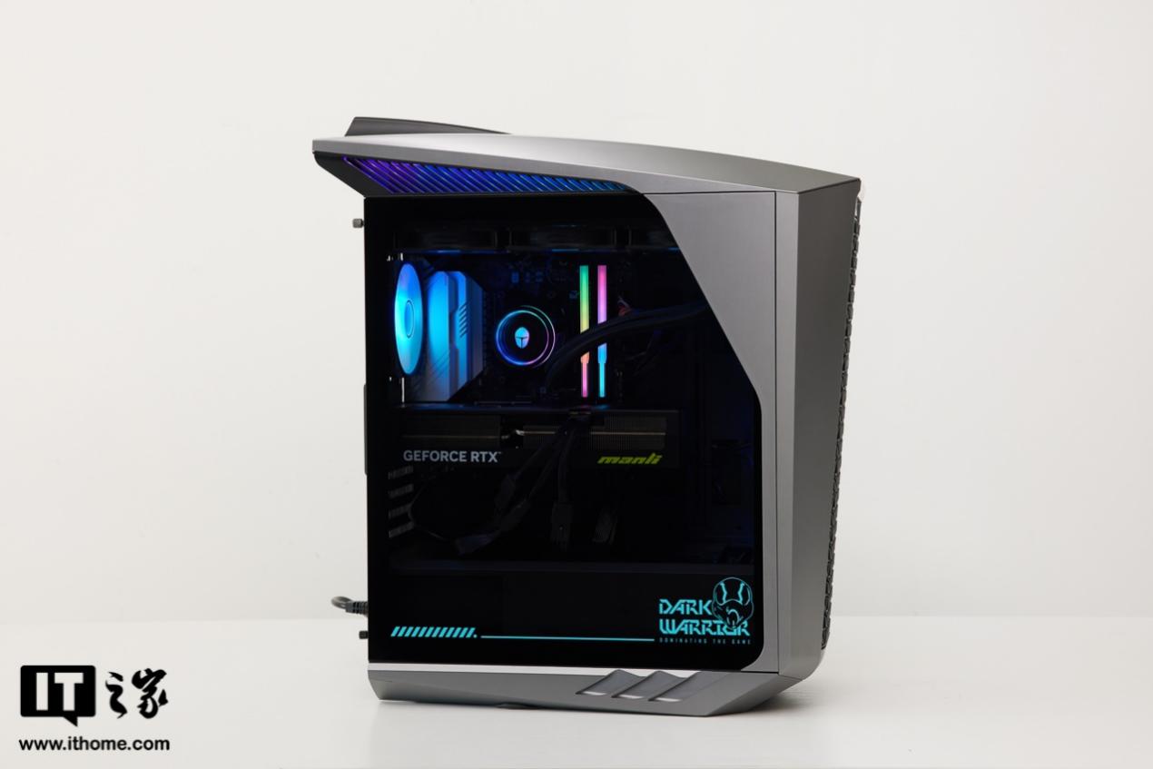 此前IT之家曾经评测过一台雷神黑武士 Shark 游戏主机,当时采用的是小尺寸机箱 + 英特尔平台,相比之下本次评测的这台雷神黑武士 Shark 游戏主机可以说在各个方面都实现了大幅进化,不仅机箱的电竞风设计更酷,散热表现更好,硬件的搭配上也更高阶,特别是机箱内的 RGB 灯光给得够足,还有个性化投影灯,情绪价值到位了。