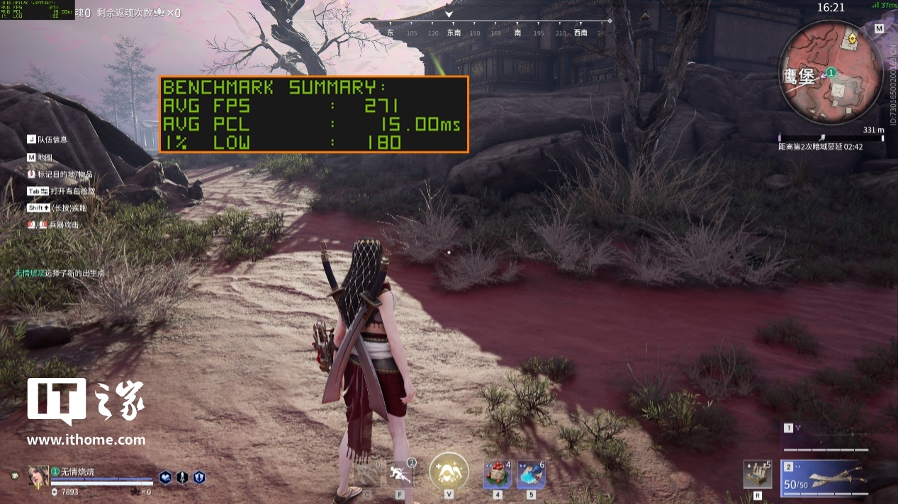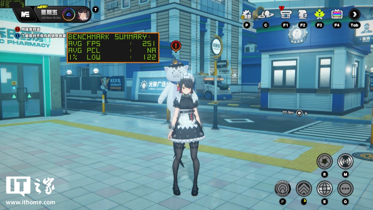 在 1080P 分辨率 + 最高画质下,传送至游戏光映广场地图进行 5 分钟跑图,游戏平均帧数为 251 帧,1% Low 帧 122 帧,相比IT之家锐龙 7 9800X3D 处理器首发评测时的平均帧数还要高出 20 多帧,表现非常出色。