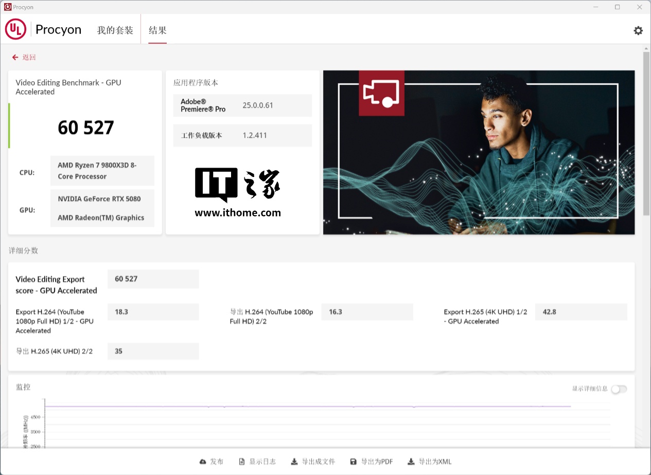 最后我们通过 UL Procyon 来测试一下雷神黑武士 Shark 游戏主机的视频编辑性能,在它的视频编辑基准测试中得分 60527 分,符合应有的水平,足以说明这台机器可以胜任主流的办公生产力需求。