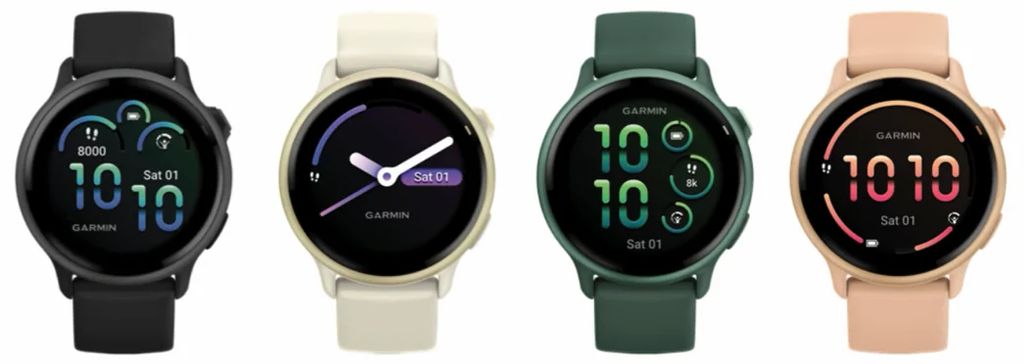 配色方面提供黑、白、橙、绿四种表壳选项,搭配同色表带和表圈组合。目前尚不清楚是否会推出多尺寸版本,Vivoactive 5 仅提供 42mm 表盘,而更早的 Vivoactive 4 则有 40mm 和 45mm 两种选择。