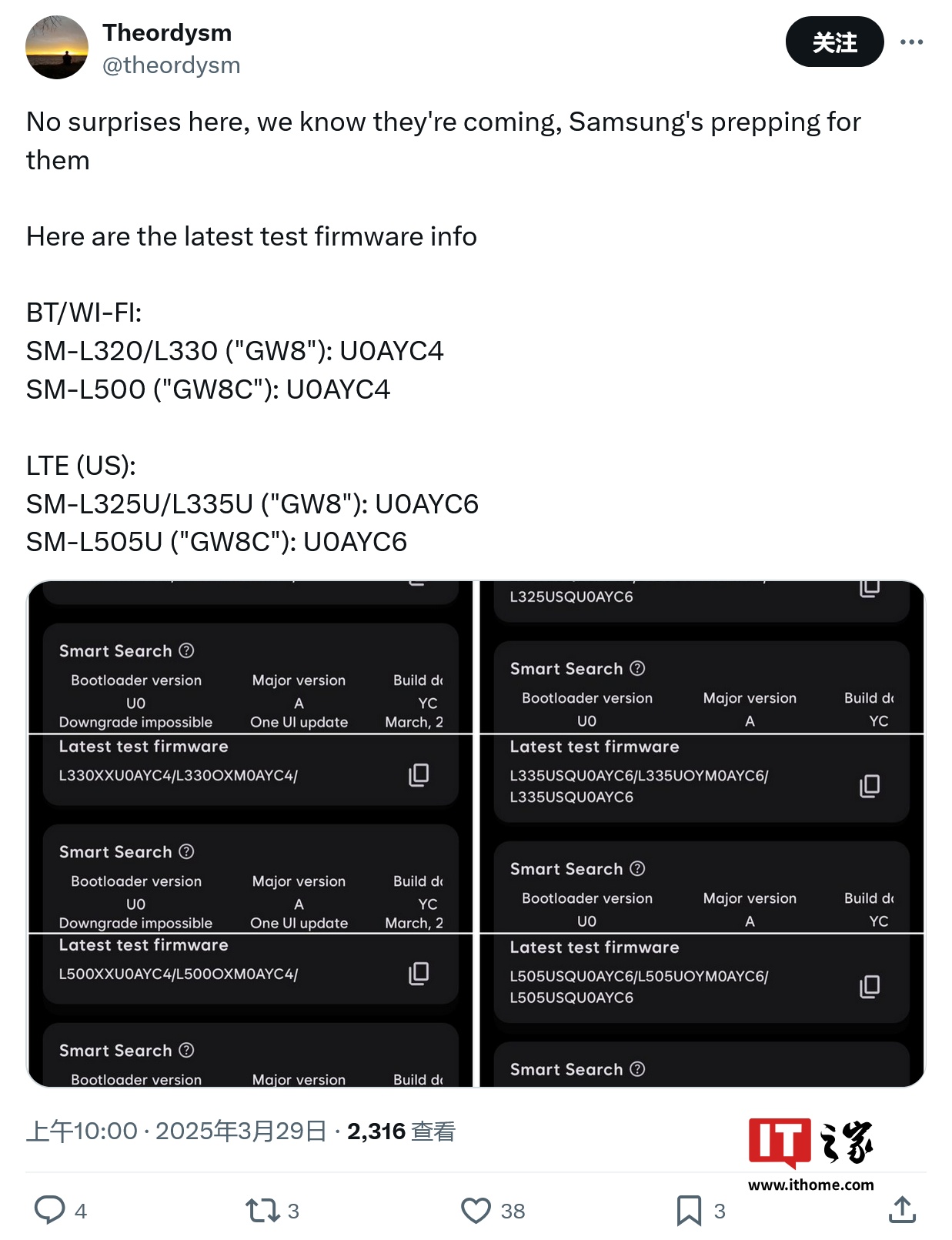 消息源 @theordysm 于 3 月 29 日在 X 平台发布推文,从固件代号中,确认三星下一代智能手表 Galaxy Watch 8 系列将推出基础款和 Classic 版。