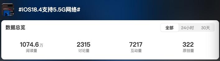 这次更新,值得关注的重点信息不少,最受网友关注的,是 iOS 18.4 支持 5G-A / 5.5G 网络。