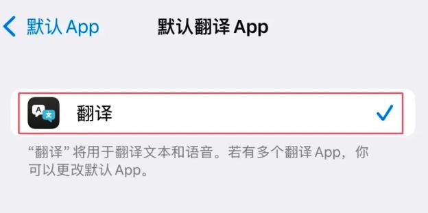 在 “ 设置 -- App -- 默认 App ” 里,是可以设置自己喜欢的默认翻译应用的。